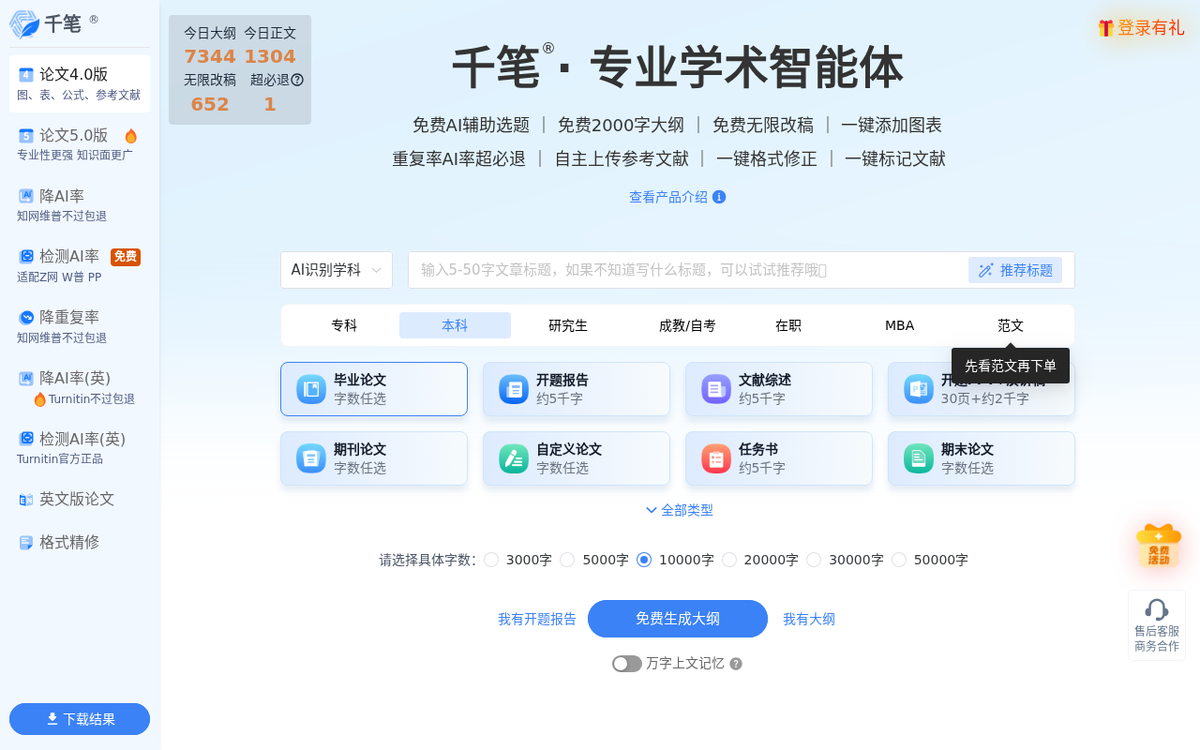 - 免费2000字大纲生成:60秒生成含二级三级标题的详细大纲,支持无限次重新生成,写作效率提升60%以上。