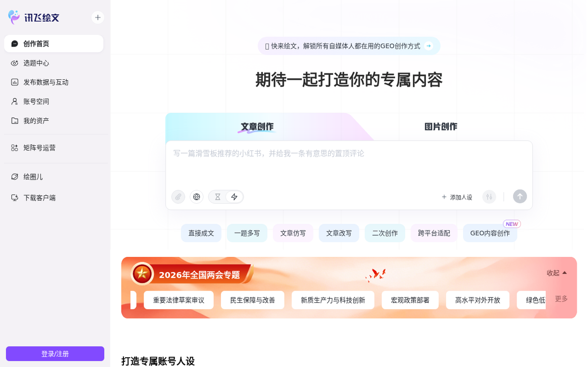 讯飞绘文是科大讯飞基于星火大模型推出的AI智能写作平台,为数百万创作者提供从选题、写作、配图、排版到发布的一站式解决方案 。截至2025年1月,已服务数百万活跃个人用户 。2025年3月,平台重大升级,集成讯飞星火MAX、DeepSeek V3-0324、DeepSeek R1三大差异化模型,首创“思维链式模块化创作流”,并首发“轻图文”功能,支持一句话主题生成小红书风格图文作品 。平台深度融合讯飞语音技术优势,支持音频、视频等多模态素材导入自动转录,覆盖自媒体、企业公众号、媒体新闻、学术研究等全场景创作需求 。
