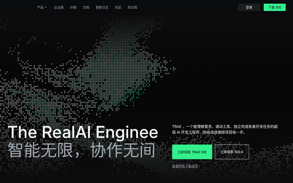TRAE是字节跳动推出的AI编程工具,定位为“超级AI开发工程师”,深度融合AI能力,能够理解需求、调用工具并独立完成各类开发任务。其核心模型采用豆包编程模型Doubao-Seed-Code,专为Agentic智能进行深度优化,在多个编程基准测试中表现优异,并支持视觉理解能力,可依据设计稿或截图自动生成代码。截至2025年底,TRAE总注册用户数超过600万,月活跃用户突破160万,累计为用户生成近1000亿行代码。平台提供SOLO模式(AI主导全流程开发)和IDE模式(AI辅助协作)两种工作方式,覆盖从需求分析、代码生成、调试测试到部署上线的完整开发链路。