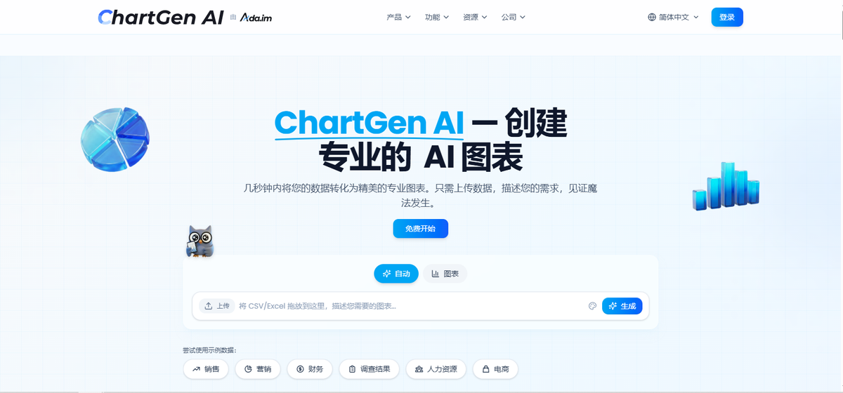 ChartGen AI是由Ada.im开发的一款AI驱动的数据可视化平台,其前身为Ada产品系统。平台致力于让数据更易于理解和传达,通过自动化工作流程,帮助用户将原始数据快速转化为精美的图表、交互式仪表板、报告和演示文稿。ChartGen AI近期在Product Hunt上线后取得显著成绩,荣获当日第一产品、当周第一产品及当月第二产品。平台支持CSV、Excel、JSON等多种数据格式,并可直接连接Google Sheets、Facebook Ads、TikTok等外部数据源。截至2026年1月,ChartGen AI已生成超过200万张AI图表,拥有5万+活跃用户,受到全球110多个国家1200多家企业的信任。2026年2月,平台进一步扩展功能,新增AI PPT生成和结构图生成能力,从单一图表工具进化为全面的数据沟通平台。
