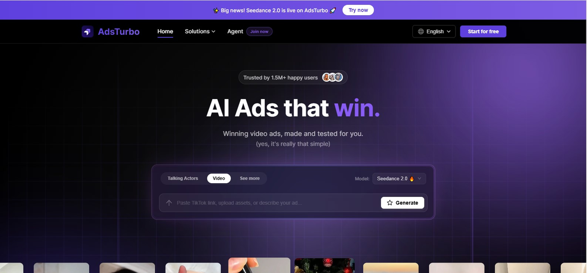 AdsTurbo AI是专为电商、增长团队与效果营销人员打造的AI视频广告创作平台,由Sora 2等先进模型提供技术支持 。用户通过商品链接、产品图片或参考视频,即可在数分钟内生成适用于TikTok、Meta、YouTube Shorts等平台的UGC风格广告与产品展示视频 。其核心亮点在于独家“广告克隆”技术——能一键拆解爆款视频的镜头结构与节奏,智能复刻其成功模式并生成海量差异化变体,同时内置AI翻译与对口型功能,完美解决出海本地化的音画同步难题 。平台已服务超150万用户,致力于帮助中小团队将测款效率提升十倍以上,将CPA获客成本降低40% 。