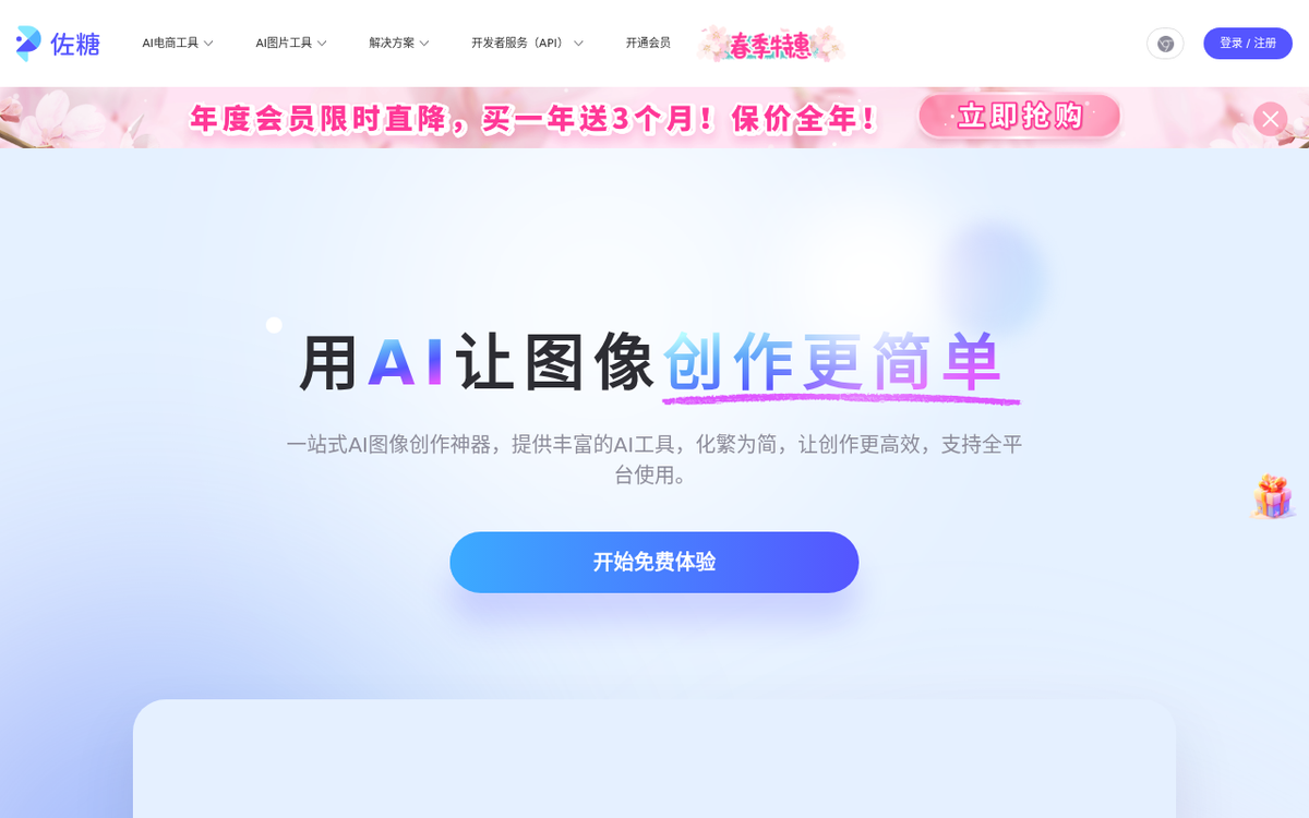 佐糖是由深圳市网旭科技有限公司于2022年推出的AI图像处理平台,历经千万次AI图形训练,致力于让图像创作更简单高效。平台以“一键抠图”为核心功能起家,逐步扩展至AI消除笔、老照片修复、自制证件照、AI商品图生成等全场景图像处理能力,支持Web端、iOS及Android多端协同。2025年以来,平台迎来多项重磅升级:推出“AI设计师”对话式修图功能,用户通过自然语言即可完成复杂改图;上线“背景复刻”模块,支持上传参考图实现1:1精准复刻,确保系列商品图视觉高度统一;新增“视频消除笔”功能,将AI能力从图片延伸至视频领域。佐糖已广泛应用于电商设计、自媒体内容创作、个人证件照制作等场景,累计服务数千万用户。